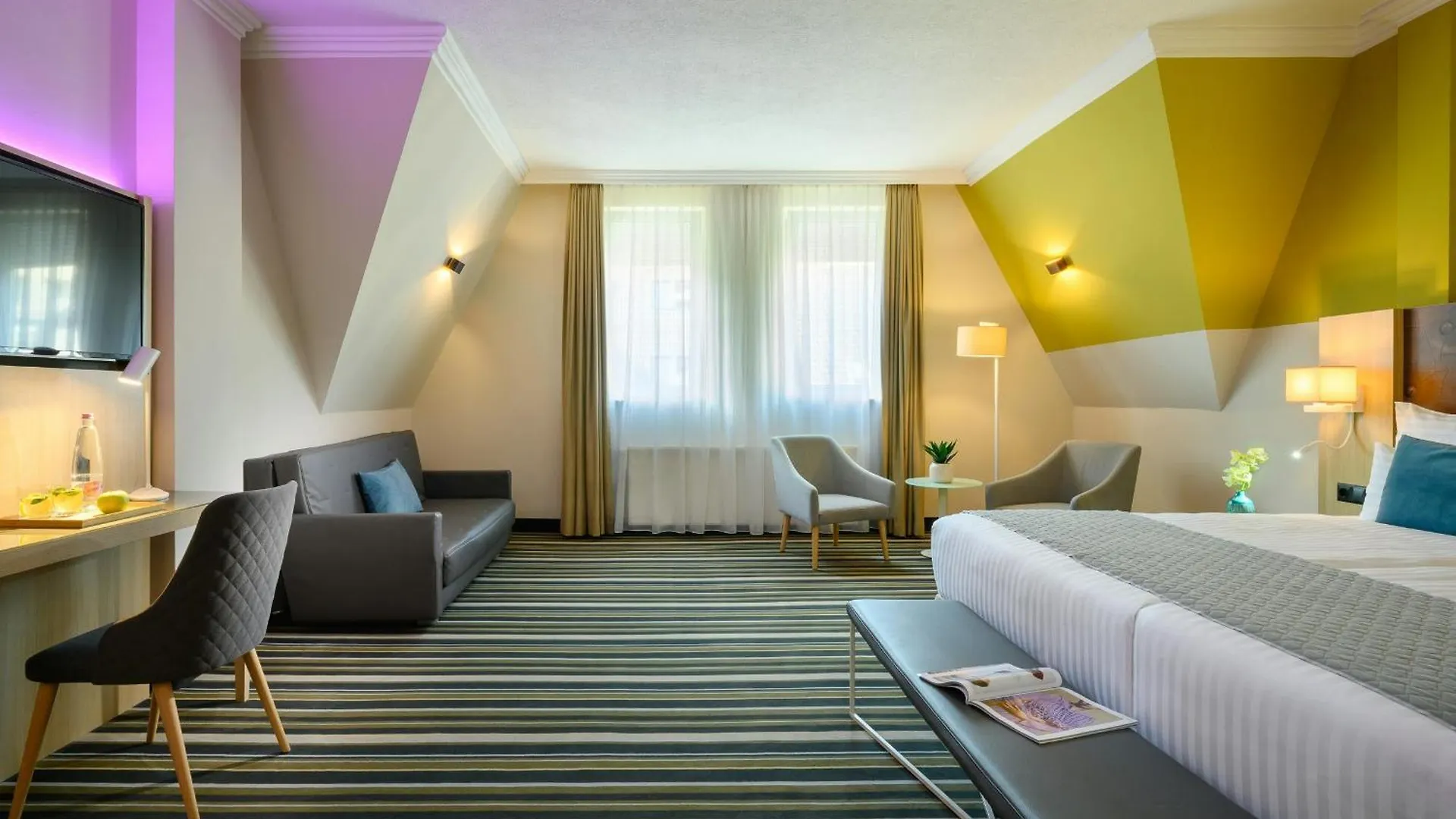 Las 182 habitaciones del hotel Leonardo Hotel Budapest incluyen terraza y zona de estar. Algunas de las habitaciones disponen de un diseño cómodo con sofá y sillones. Para tu seguridad, estas habitaciones cómodas están equipadas con caja fuerte para portátiles. También proporciona ducha a ras de suelo y un lavabo, además de comodidades como zapatillas.